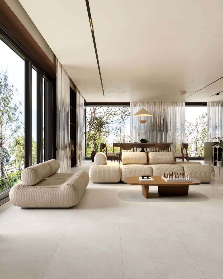 自然純粹的米灰底紋上漂浮著淡淡的銀白色紋理,是時光賦予的溫柔,表面紋理簡約、悅目,悠然地展現(xiàn)出米灰的深沉與靜謐,記錄時光的流轉,創(chuàng)造出一片獨特的空間奇跡。