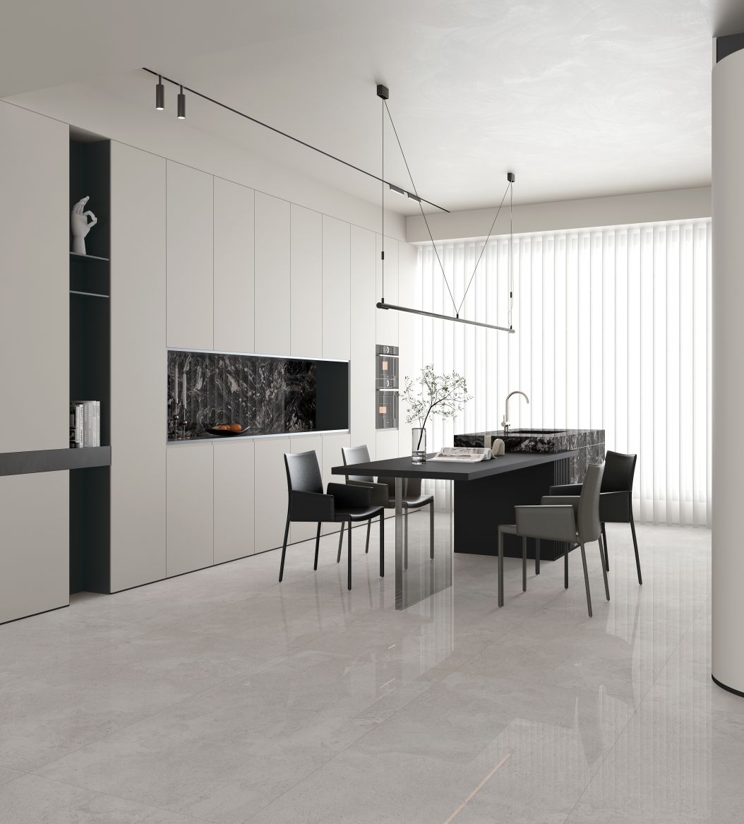 獨特時尚的米杏色調(diào),變幻莫測的漸變紋理流動,彷如歲月的雕琢,給空間帶來連貫、完整、延伸的無垠視界。