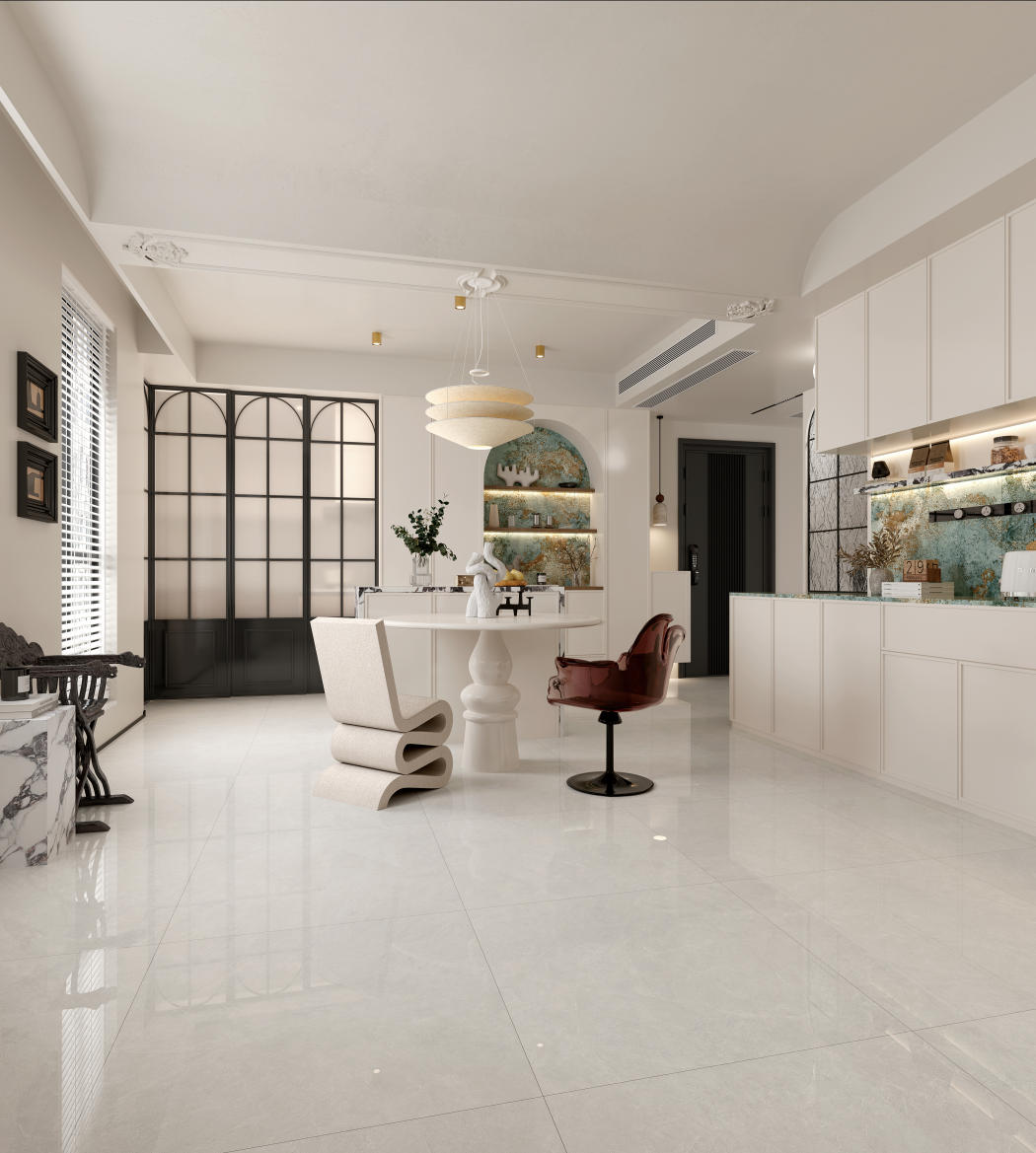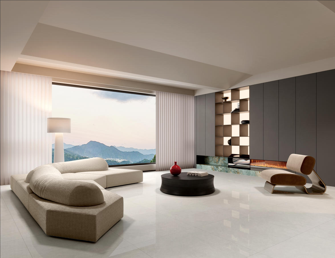 云絮飄動(dòng)似的微弱紋理,其間淺灰紋理若隱若現(xiàn),又如冬日山林雪徑,簡約雅致,為空間注入清冷高級感,營造寧靜舒適的家居氛圍。