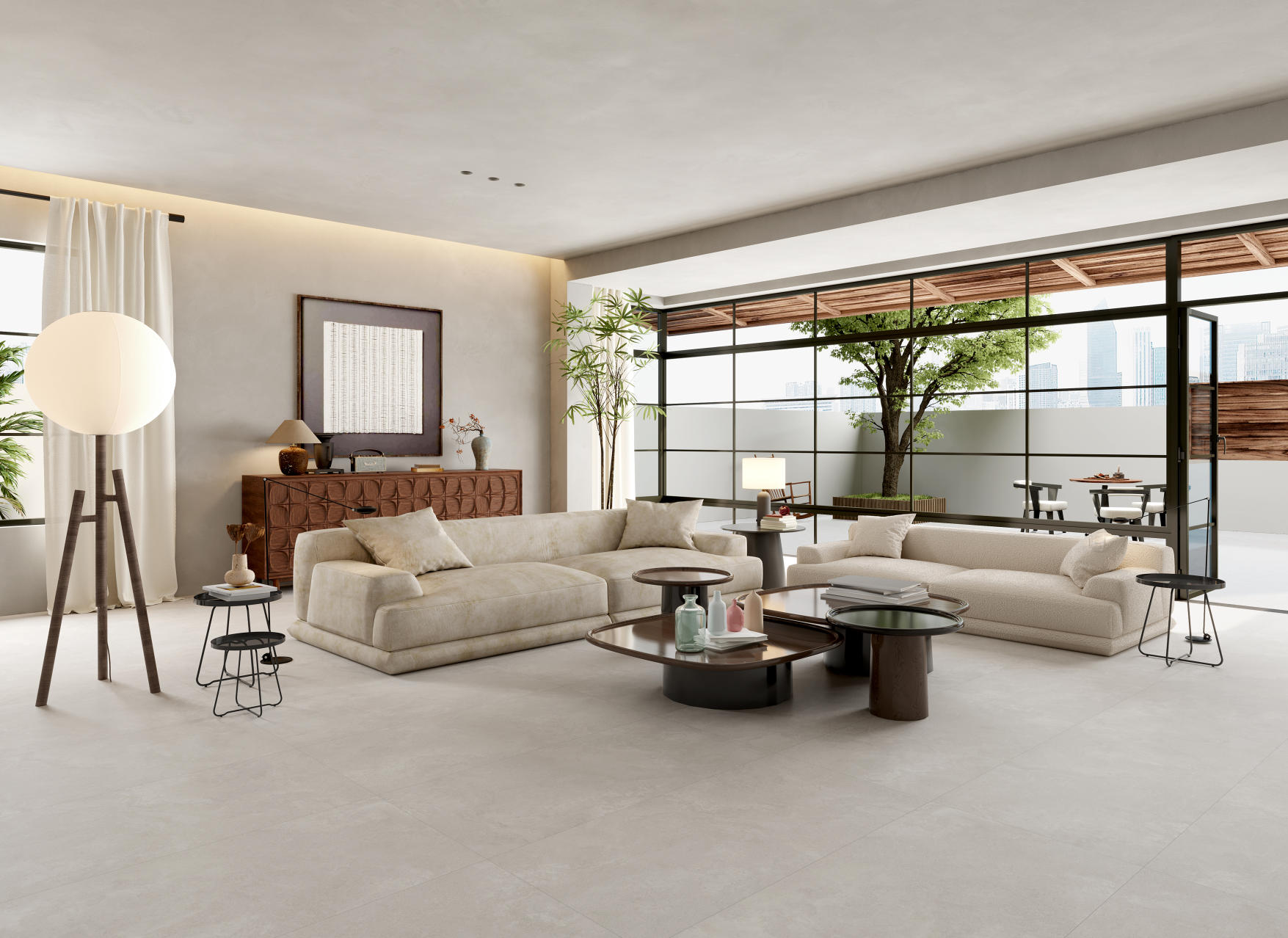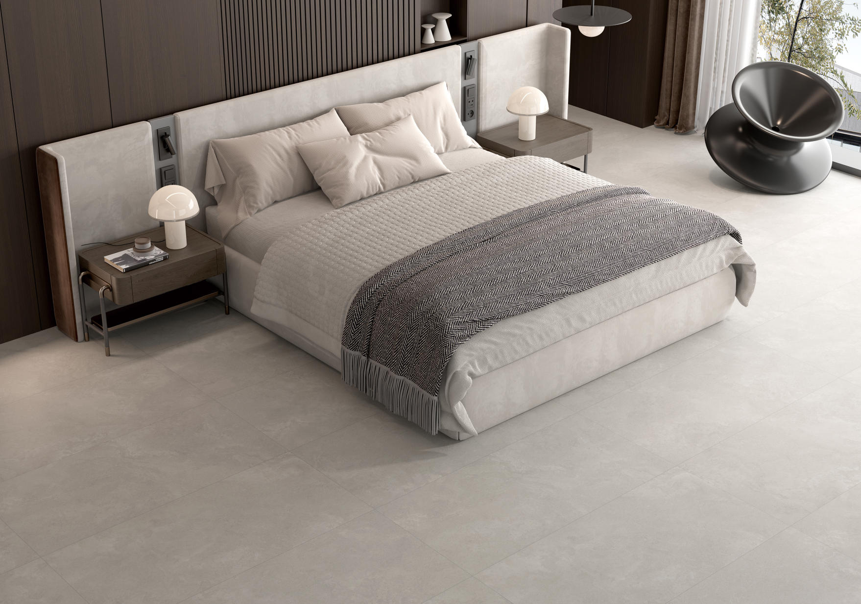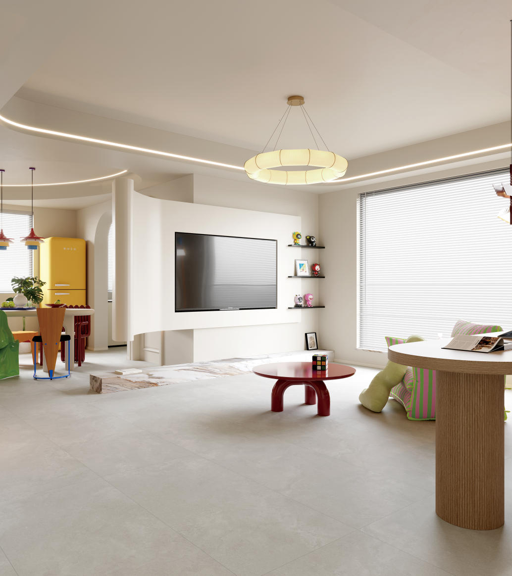 獨特時尚的米杏色調(diào),變幻莫測的漸變紋理流動,彷如歲月的雕琢,給空間帶來連貫、完整、延伸的無垠視界。