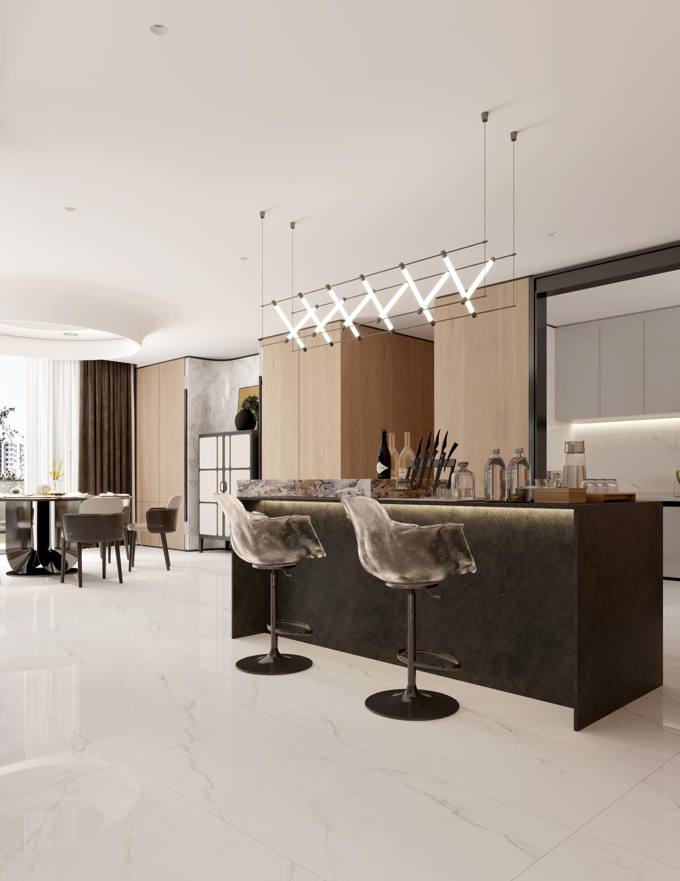 白而不膩的底色上,肆意生長的灰色紋理,輕盈鎏金從容隨性,仿佛晨光微曦時(shí)破曉的天宇滿載著生命的力量,在光線輾轉(zhuǎn)處撒歡。